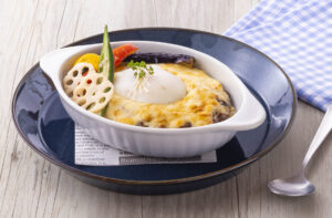 小麦粉不使用のオリジナルスパイスカレーや「パンの朝顔」の人気No.1商品自家製牛すじ煮込みのカレーパンのカレーを使った焼きチーズカレー